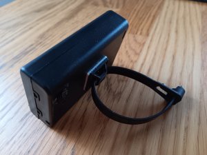 Der Kabelbinder ist leicht zu öffnen wenn man das Batteriekästchen wieder abnehmen möchte . Siehe Fotos