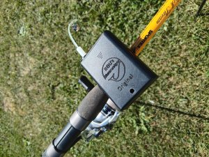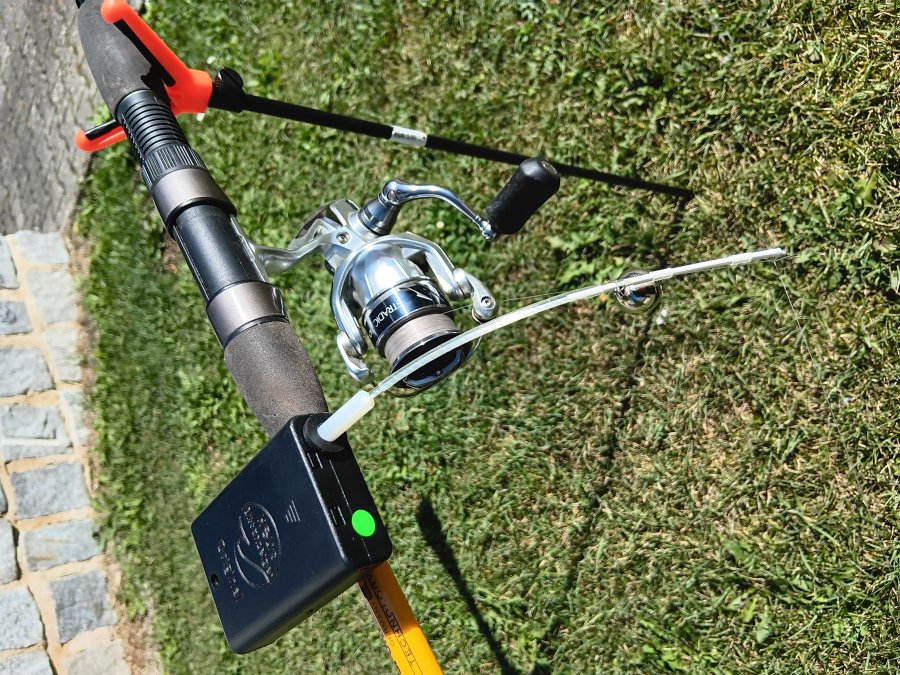 Durch die Halteplatte die am Batteriefach angebracht ist kann man mit einem Kabelbinder Helis Bissanzeiger auf allen Angelruten anbringen !