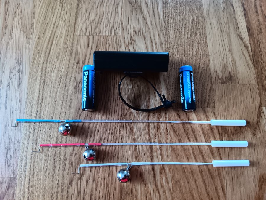 1x Bissanzeigerstab mit Glocke für extrem stark fließende Gewässer 2 x AAA Batterien.